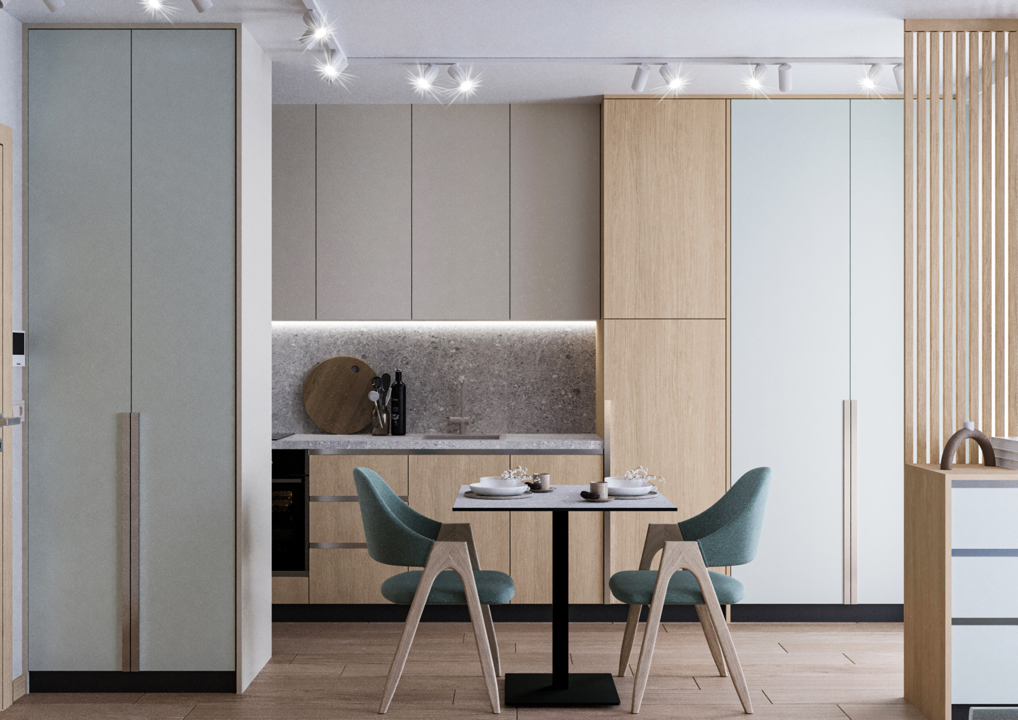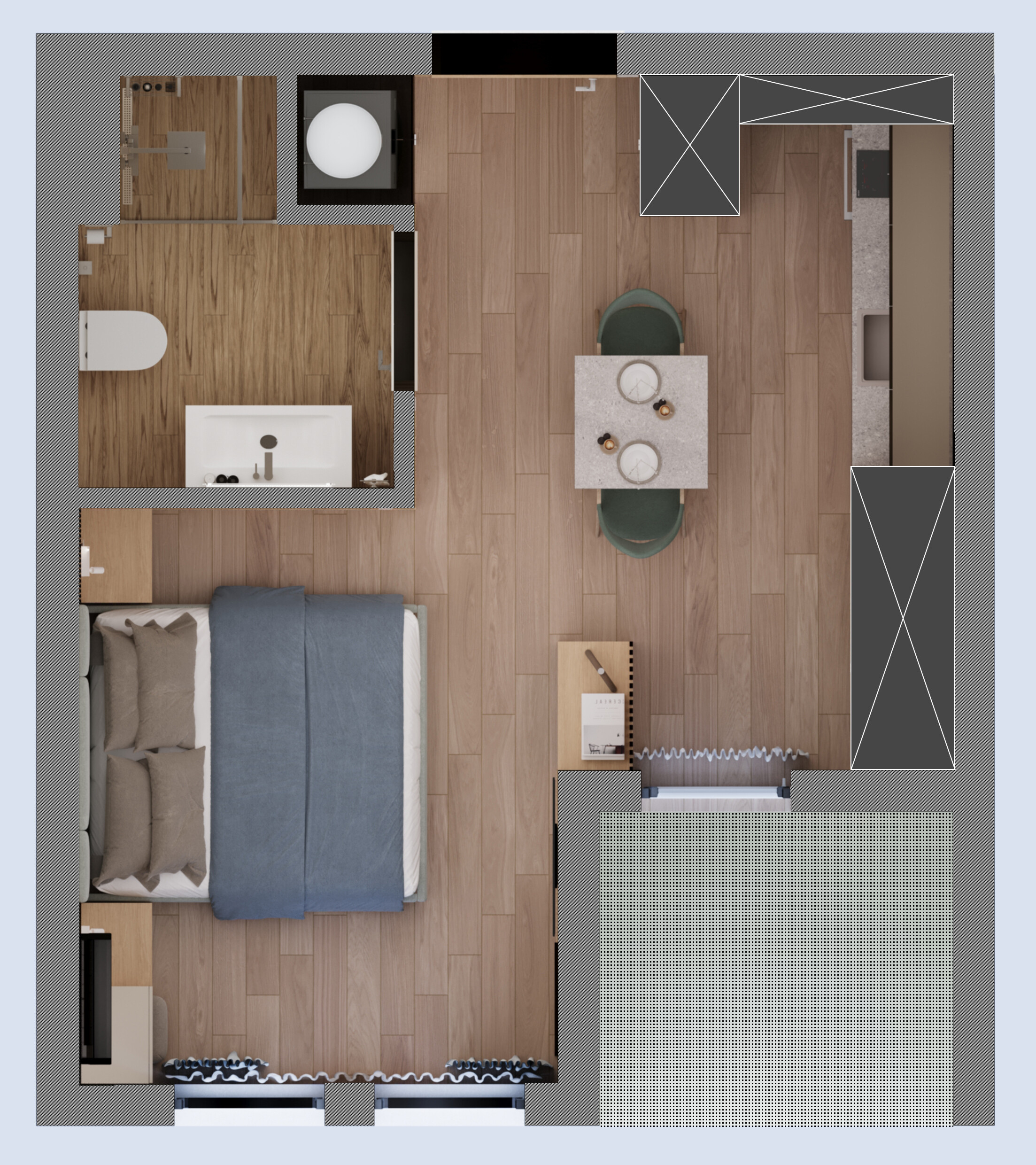 Typy mieszkań: Kawalerki, mieszkania dwupokojowe (z jedną sypialnią), trzy pokoje oraz przestronne apartamenty wielopokojowe na najwyższych kondygnacjach z dużymi tarasami.